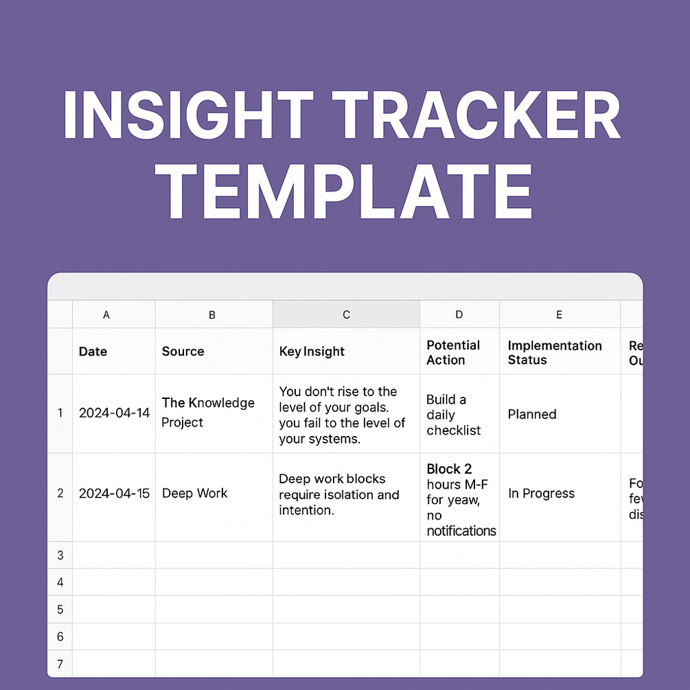 You'll get a customizable Google Sheets tracker to turn insights into action — perfect for books, podcasts, and big ideas.